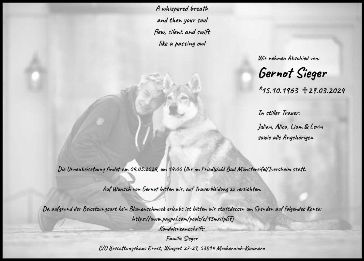 Habe grade im Internet gesehen, das Gernot von Uns gegangen ist.