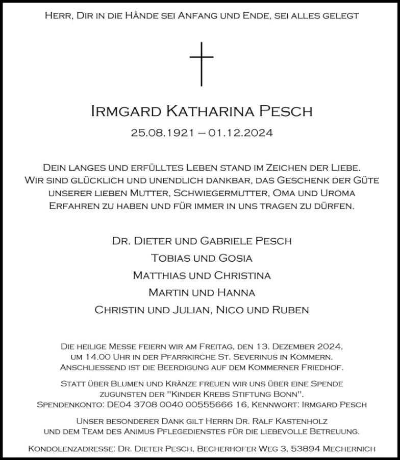 gestorben am 1. Dezember 2024 in Mechernich-Kommern