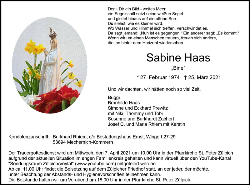 mit großer Erschütterung trifft uns, als DRK-Kollegen, der viel zu frühe Tod von Sabine - der uns sprachlos macht.